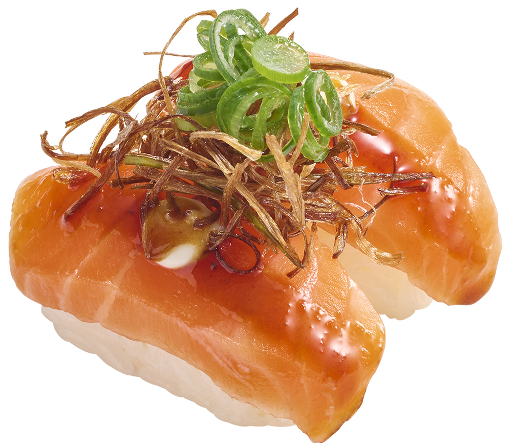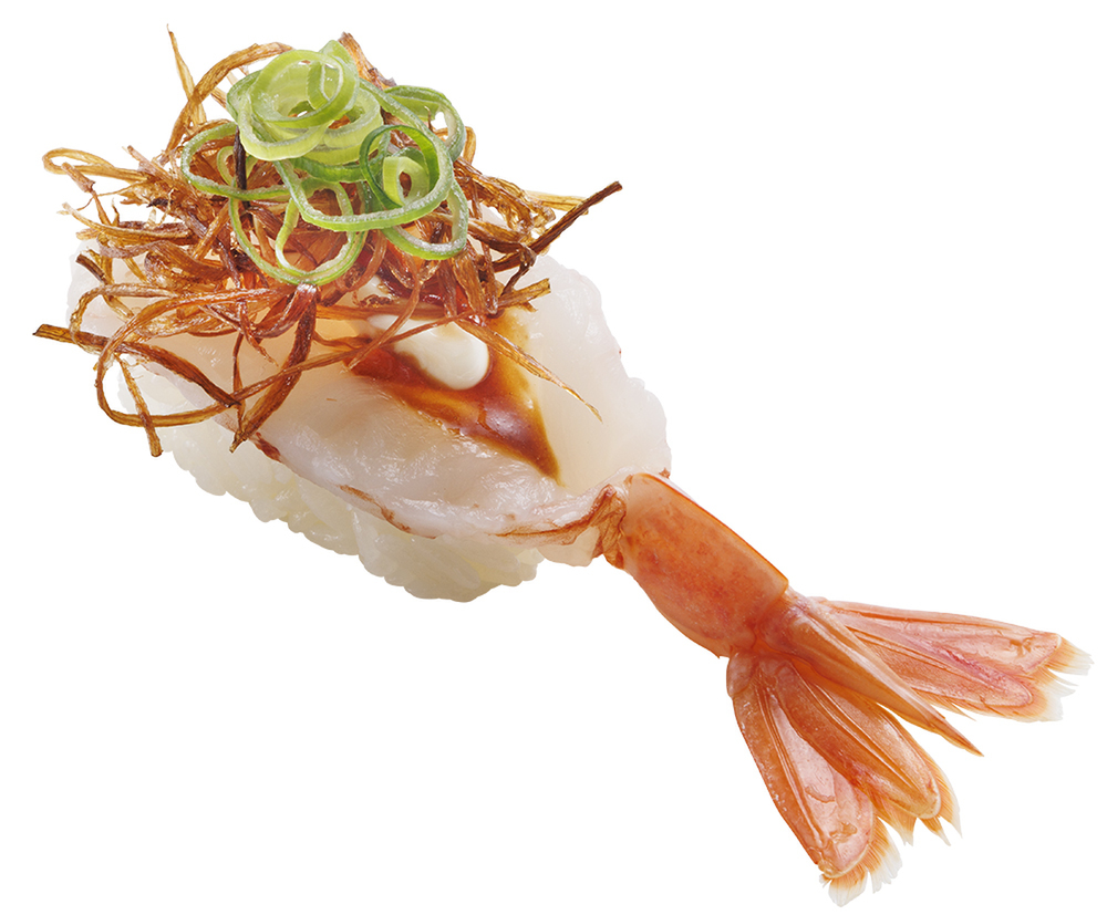 赤えびとサーモンに香ばしい揚げネギと特製マーラーソース、マヨネーズをあわせた「マーラー風味赤えび揚げネギ添え」と「マーラー風味サーモン揚げネギ添え」が登場。スパイシーな味わいと香ばしさが特徴の創作すしです。
