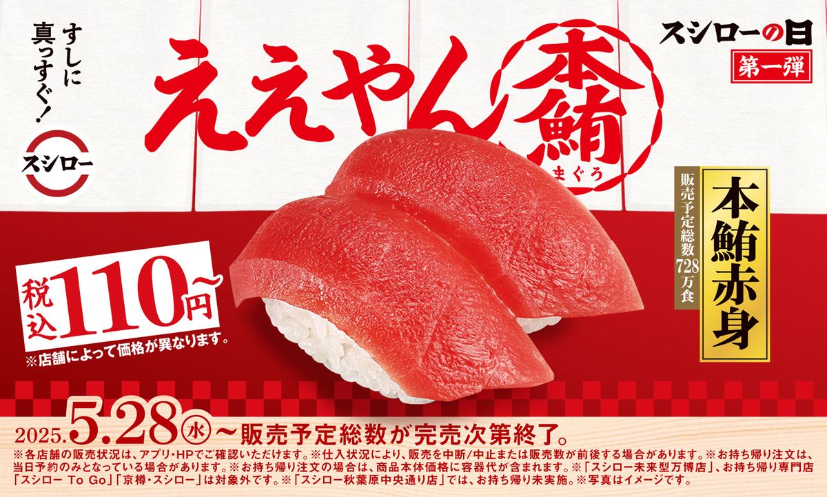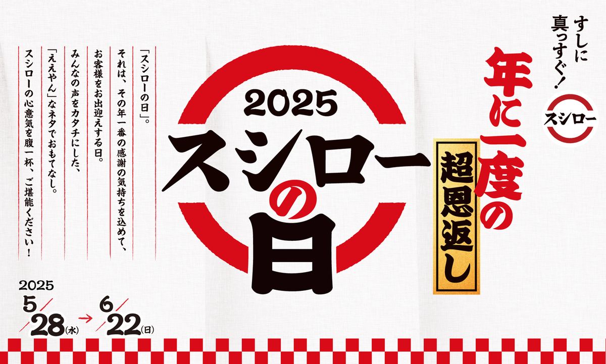 スシローは5月28日より、全国の店舗で「年に一度の超恩返し!2025スシローの日」第1弾を開始します。