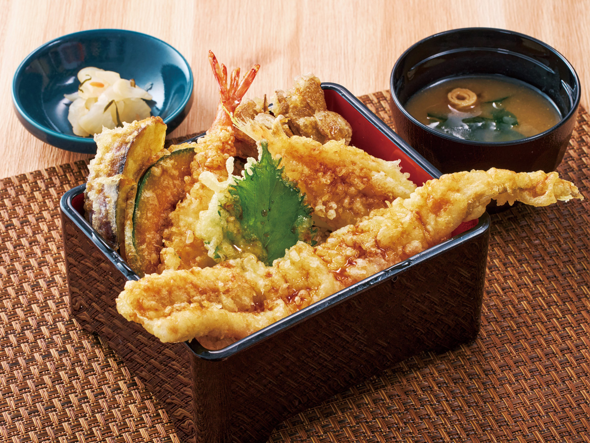 インパクトのある見た目で目を引く「活〆一本穴子天重」も登場。はみ出すほどの真穴子を丸ごと一本天ぷらにし、天重として提供します。