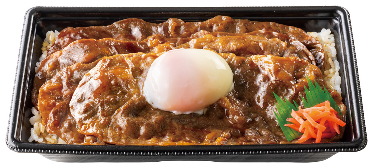 使用している「焼きすきのタレ」は、醤油ベースで砂糖やみりんがブレンドされ、甘めの味付けが肉の旨みを引き立てるといいます。牛肉を豪快にごはんの上に盛り付け、仕上げにとろりとした温玉を添えています。