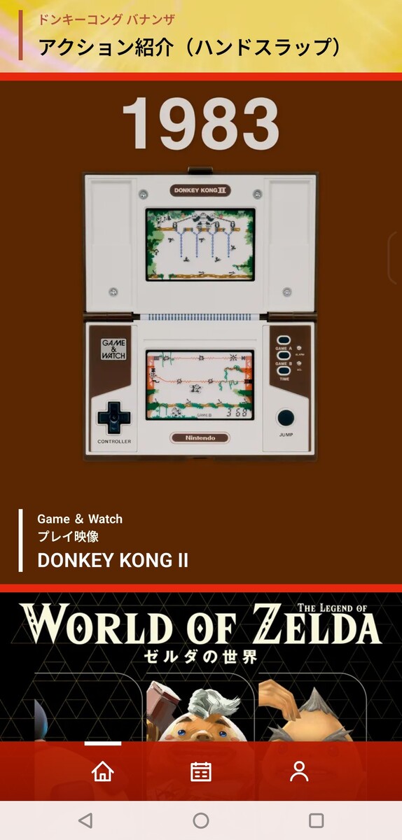 試したのは本日5月27日配信の「DONKEY KONG II」プレイ映像。1983年のGame & Watchで遊べるタイトルで、実機プレイしている貴重な映像を見られる。しかしこれを再生しながらスマホでスクリーンショットすると……。