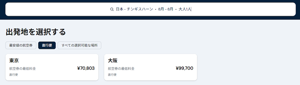 乗り継ぎ便でもお盆の時期の繁忙期は東京発で10万円代からのため、もしこの記事を読んで、モンゴルに行こうと思い立ったら、早めに航空券を手配したほうが良さそうです。