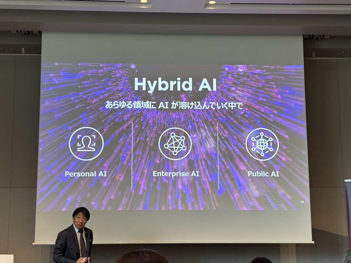 とくに、ハイブリッドAI(個人、組織内、パブリック)のシームレスな管理・運用が重要となるとしていて、AIが個人の日常やビジネスシーンに深く入り込むことで利便性が高まる一方、それを受け入れるかどうかはユーザーによって意見が分かれるため、慎重かつ段階的に進める必要があると述べていた。