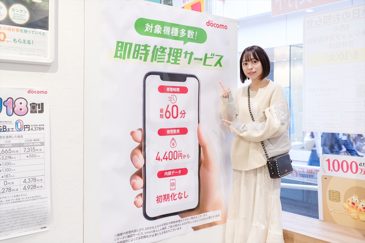 リペアコーナーがあるドコモショップは商業地域にある場合が多いので、修理が終わるのを待っている間に買い物を済ませたり、食事をしたりもできる。若い世代を中心に「一時たりともスマホを手放せない」という人は多いと思うが、店頭即時修理を利用すれば、LINEやSNSができない時間をわずか1時間程度に抑えられるというわけだ。