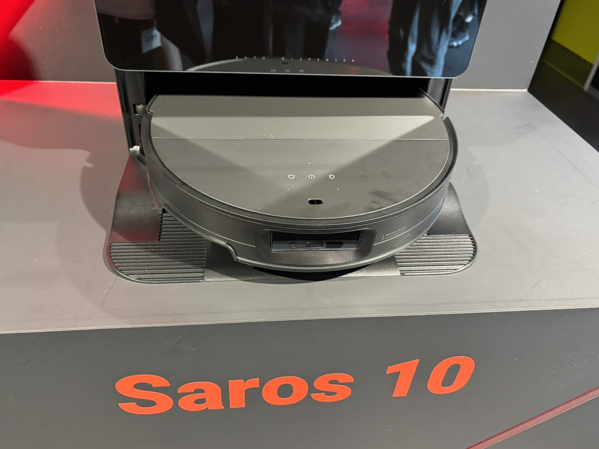Saros 10専用の8way全自動ドックは、ゴミ収集、モップの洗浄・乾燥(80度温水洗浄で細菌99.99%除去、60度熱風乾燥)、給水、洗剤自動投入、高速充電(約150分でフル充電)を全て自動で行い、メンテナンスの手間を最小限に抑えられるとする。
