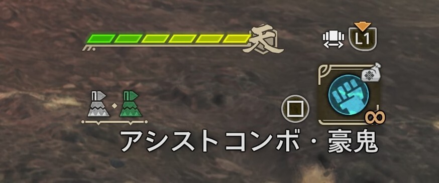 モンスターの傷を狙って「ドライブインパクト」を放つと、豪鬼の代表的な必殺技「瞬獄殺」が発動する。アイテムスライダーから発動してもいいし、□→L2+R1で発動もできる。