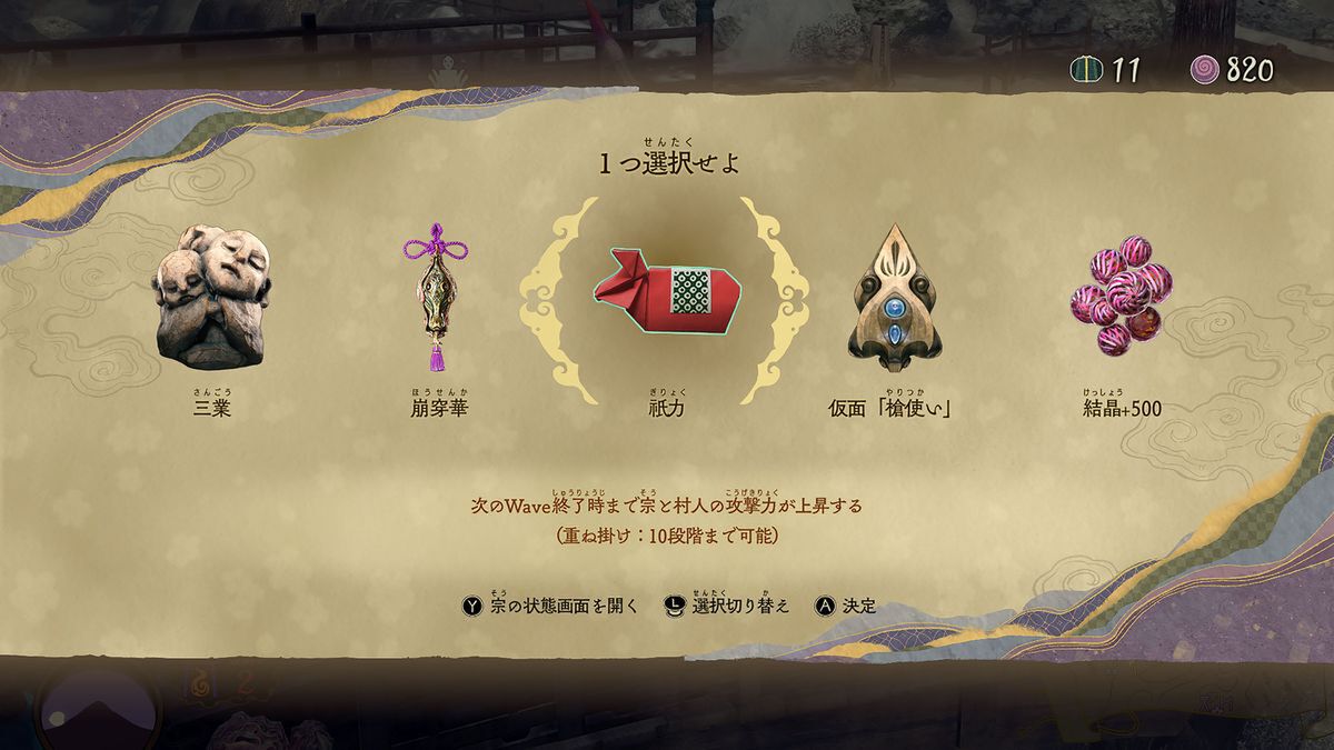 「畏界遷宮」は本編クリア後(1周目)に解放される、鳥居の裏「畏界」を舞台としたエクストラコンテンツ。本編を踏襲しつつも、よりシンプルになった昼夜のサイクルをベースに幾度幾夜とも続く畏哭たちの猛襲(ウェーブ)から、世代を護り続けるハイスコアアタックの“腕試し”が楽しめる。