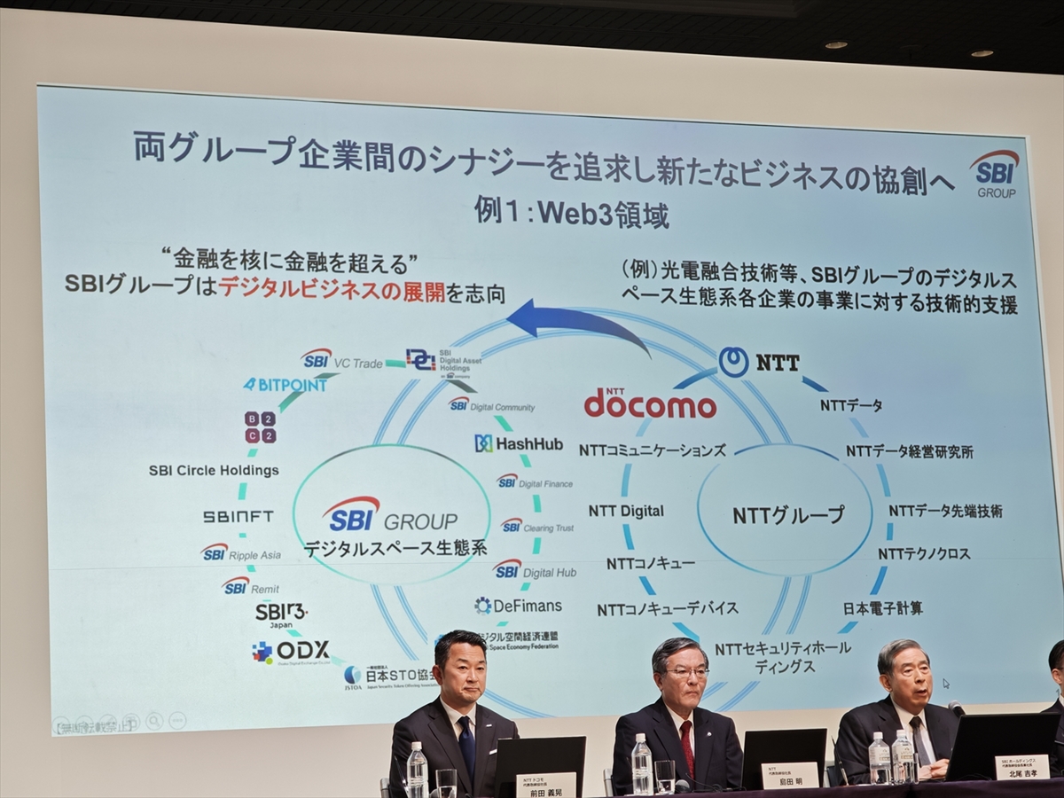 金融領域を中核としつつ、両グループは資産運用、セキュリティトークン、保険分野での新サービス、NTTデータによるSBIグループの金融システム開発・保守連携、そして通信と放送の融合を含むネオメディア生態系といった幅広い領域での連携も検討する。SBIホールディングスの北尾会長は、地域金融機関との「第四のメガバンク構想」についても、住信SBIネット銀行の連結子会社化がマイナス影響を与えることはなく、NTTグループも地域を重要顧客と考える点で同じ考え方であると述べた。