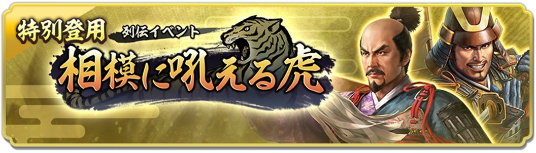 「登用札・相模に吼える虎」や「無償小判」を獲得できるイベントログインボーナス、称号や列伝金貨を獲得できるパネルミッションの開催、「秘伝絵巻・相模に吼える虎」「秘伝書・相模に吼える虎」などの入った各種「列伝パック」の販売も同時に行っている。
