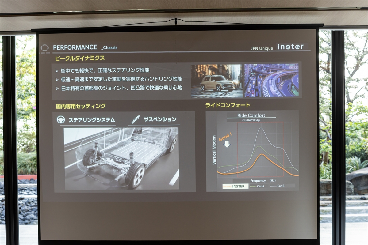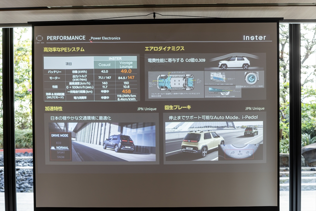驚いたことに、日本の道に合わせた「日本仕様」に仕立てているとのこと。たとえば加速などでも、緩やかな加速感にしているほか、足回りも日本の道に合わせているという。その効果は確かに感じとれ、柔らかめの乗り味は広く受け入れられそう。また、回生ブレーキの動きも緩やかに仕立てられていました。