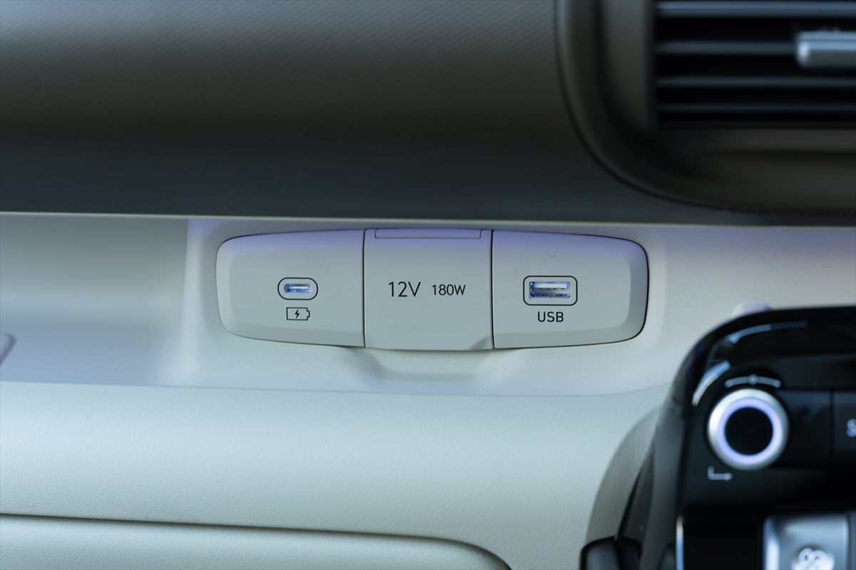 USBは充電用がType-Cですが、車両と接続する方はType-A。また、AC100Vアウトレットが用意されていました。