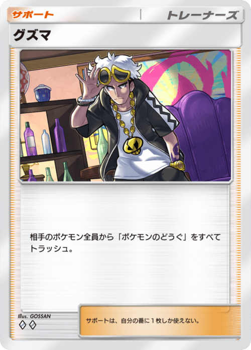 残り少ないサポート枠で優先的に採用したいのがグズマ。本弾では、とかくグズマの重要性が上がっています。どのタイミングで使うかも含め、プレイングの鍵になるカードです。