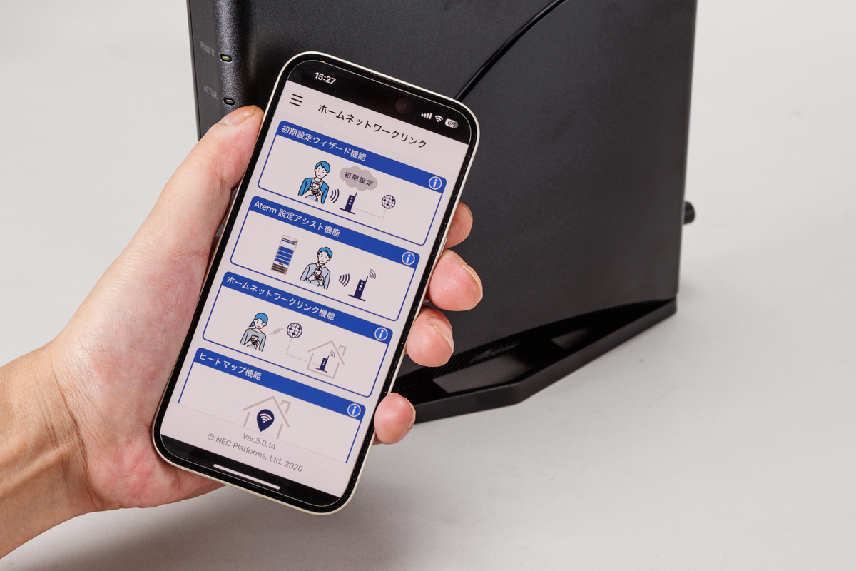 ルーターの乗り換えや初期設定は、iPhone/Androidスマホ対応の専用アプリAterm ホームネットワークリンクから簡単に行える。