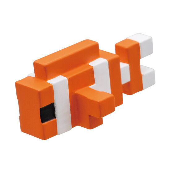 ゲーム内の暖かい海に生息する熱帯魚から、クマノミがマスコットとして選ばれました。ちなみに、マインクラフトの世界ではウーパールーパーは熱帯魚を食べます(正確には「熱帯魚入りのバケツ」で繁殖する)。ゲームの世界ではともかく、この商品ならウーパールーパーとクマノミの共存が可能。