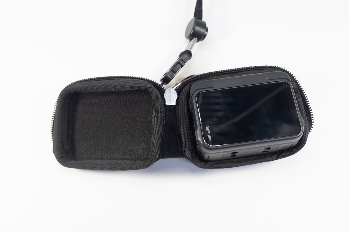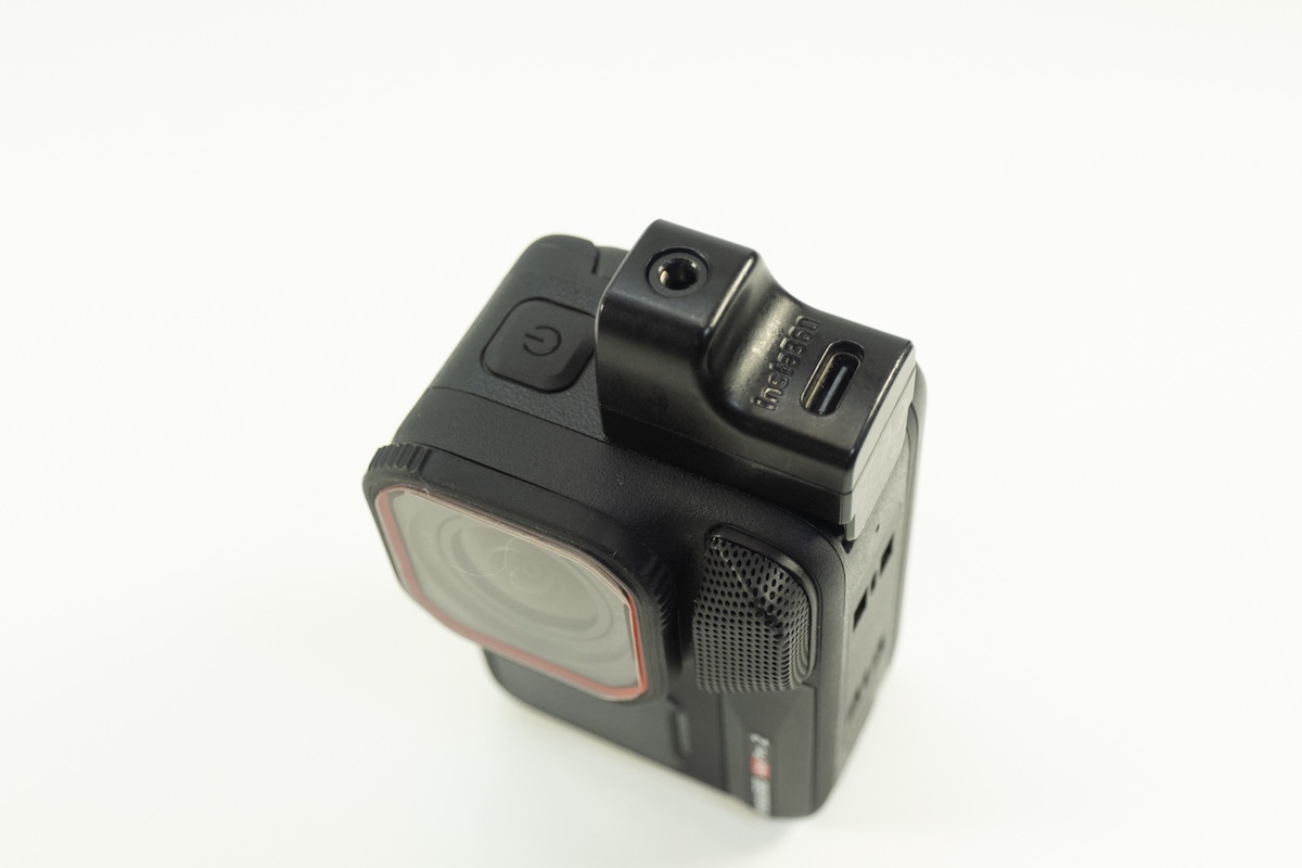 本体サイズがほぼ同じなので、アクセサリー類も流用できます。Ace Pro用に購入したサードパーティー製のケースやマウントアクセサリー、オーディオアダプターはそのまま「Insta360 Ace Pro 2」にも装着できました。
