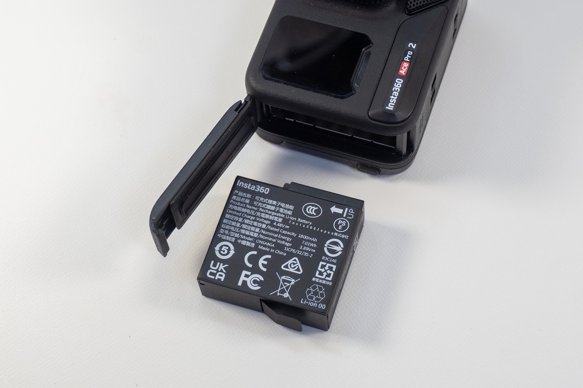 またバッテリーは1650mAhから1800mAhへと強化されていますが、バッテリー自体は互換性があるので、「Insta360 Ace Pro 2」でAce Proのバッテリーが利用可能です。