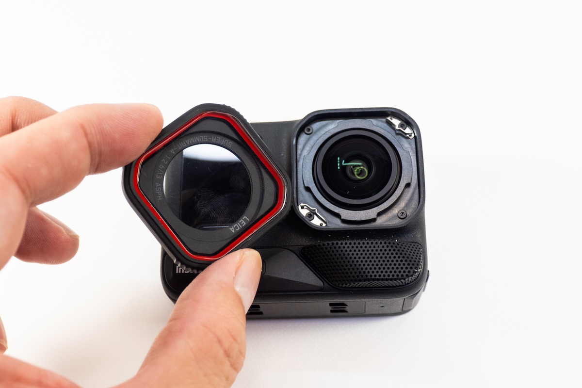 レンズの前面は取り外し可能な保護ガラスになりました。移動中はストラップで首からぶら下げてAce Proを使っていたのですが、同じくぶら下げているスマートフォンなどとぶつかるケースも多く、傷が心配でした。(連載記事「旅先での動画撮影に、画質も含めてかなり満足できる「Insta360 Ace Pro」」)