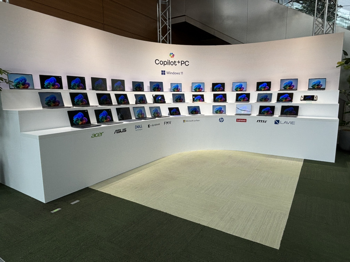 またCopilot+ PCを展開している各PCメーカーの実機も併せて展示。担当者によると、去年Copilot+ PCを発表してから約1年が経ち、メーカー10社のべ71モデルへの広がりを見せているという。