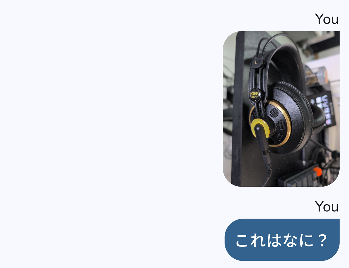 今回は「AKG」というメーカーのヘッドフォン、型番「K240 Studio」の写真をアップロードして「これはなに?」と聞いてみた。