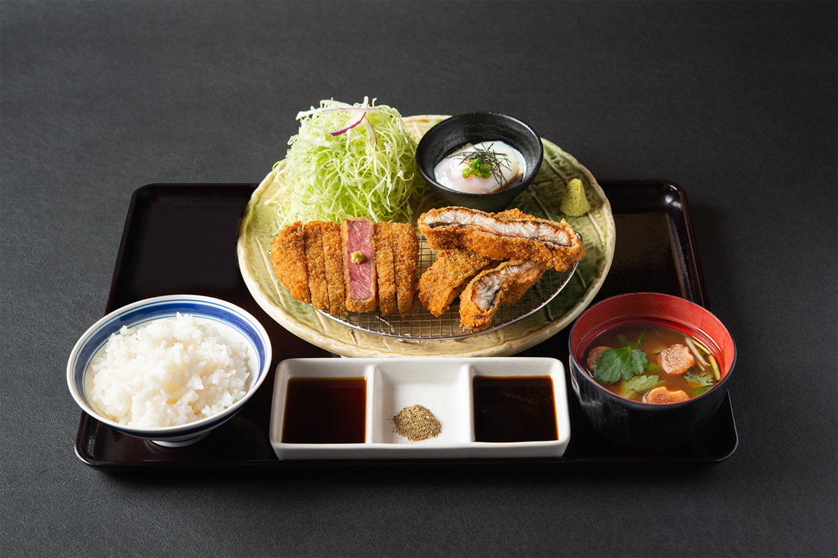 季節ごとに販売している“牛と海鮮の相盛り膳”シリーズの一つで、今回は看板メニューの牛カツと“鰻カツ”との毎夏好評な贅沢な組み合わせ。