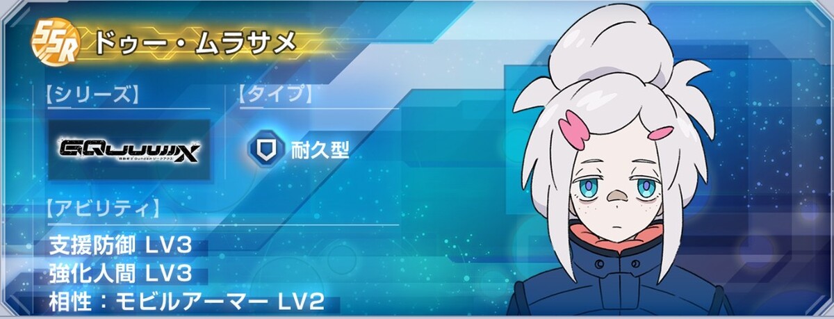 バンダイナムコエンターテインメントより配信中のiOS/Android向けガンダムシミュレーション「SDガンダム ジージェネレーション エターナル」。毎週恒例となっているTVアニメ「機動戦士Gundam GQuuuuuuX」放送記念ログインボーナスで、SSRキャラクター「ドゥー・ムラサメ」が無料配布された。