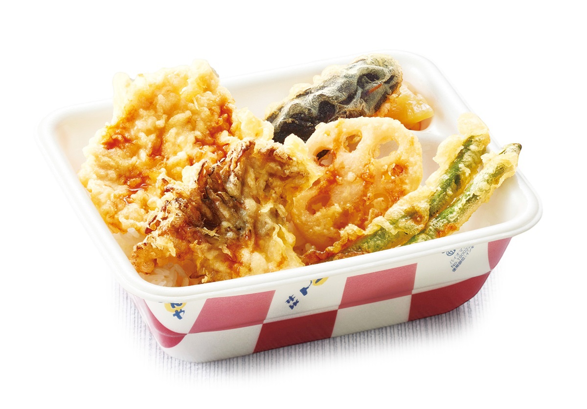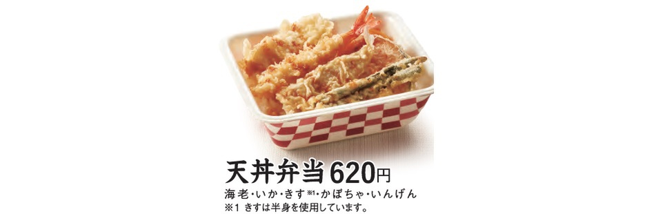 単品天ぷらの人気上位である「とり天」と「まいたけ」を含む5品をのせたお弁当を用意。600円という価格は、天丼てんやの持ち帰り限定メニューの中でもお値打ちな価格設定です。