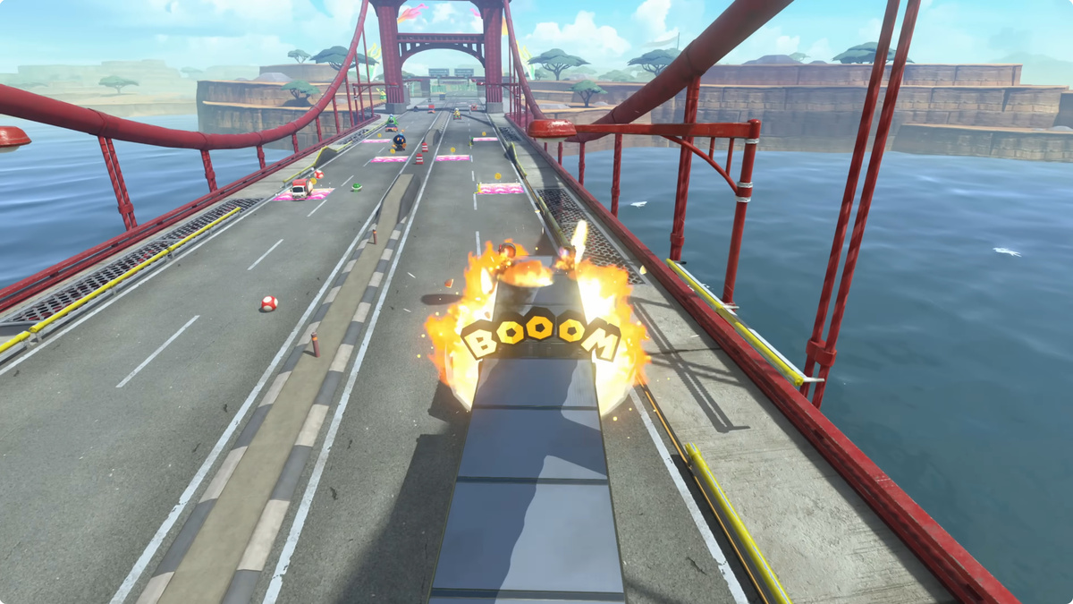 時間内は普段障害物として向かってくるクルマや電柱を吹っ飛ばしながら走行可能。その様子がマリオカートらしくないとして笑いを呼び、「無法すぎる」「GTAかな」「もはや別ゲー」と注目を集めている。