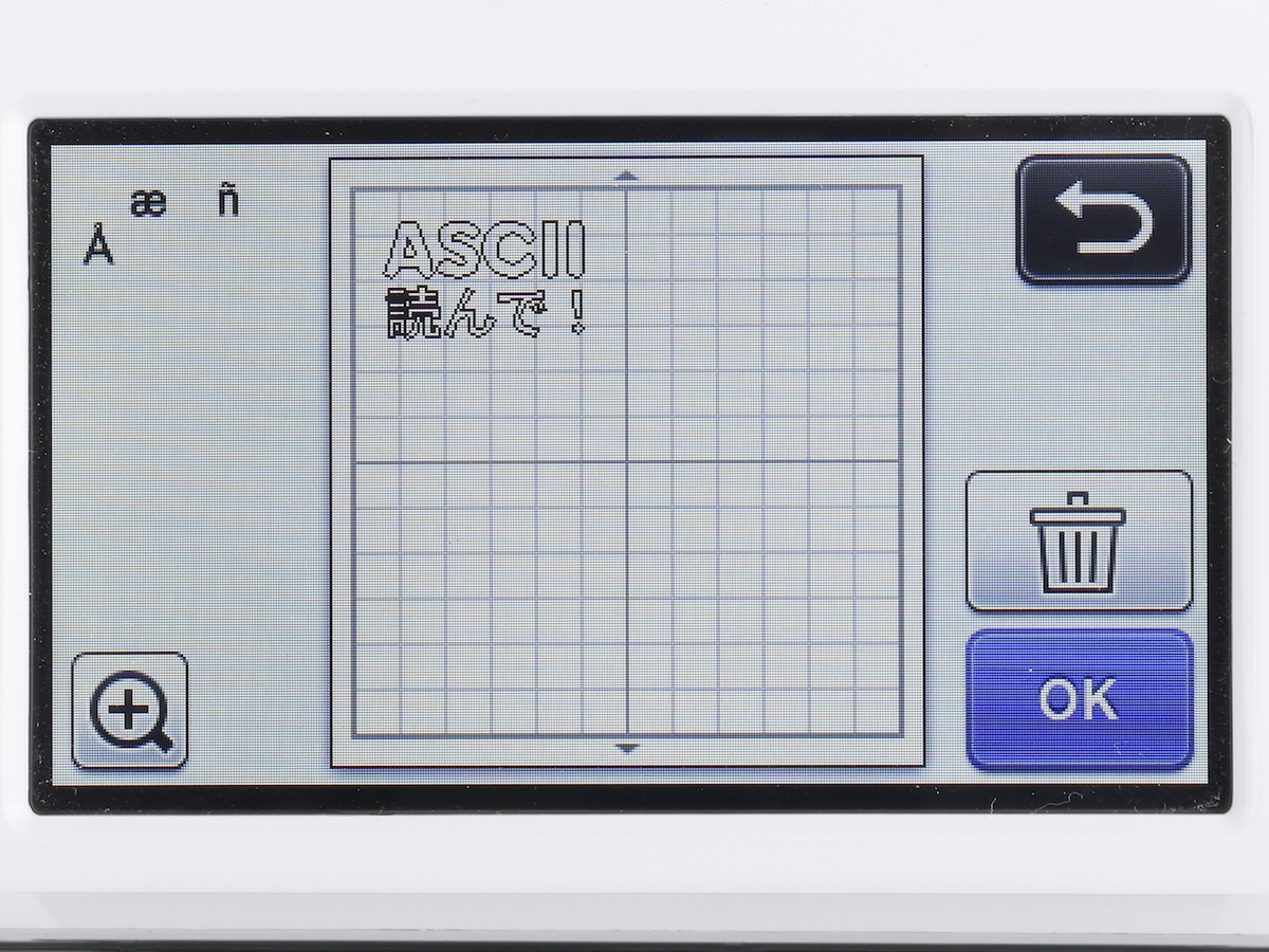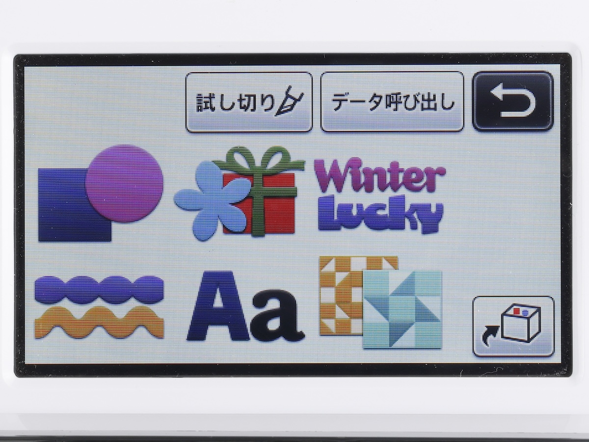 日本語には対応していないものの、アルファベットや簡単な記号、図形などが用意されているため、シンプルなデザインであれば、本体だけで作成できるというのがいいところ。操作はタッチパネルとなるため、結構簡単に使えます。