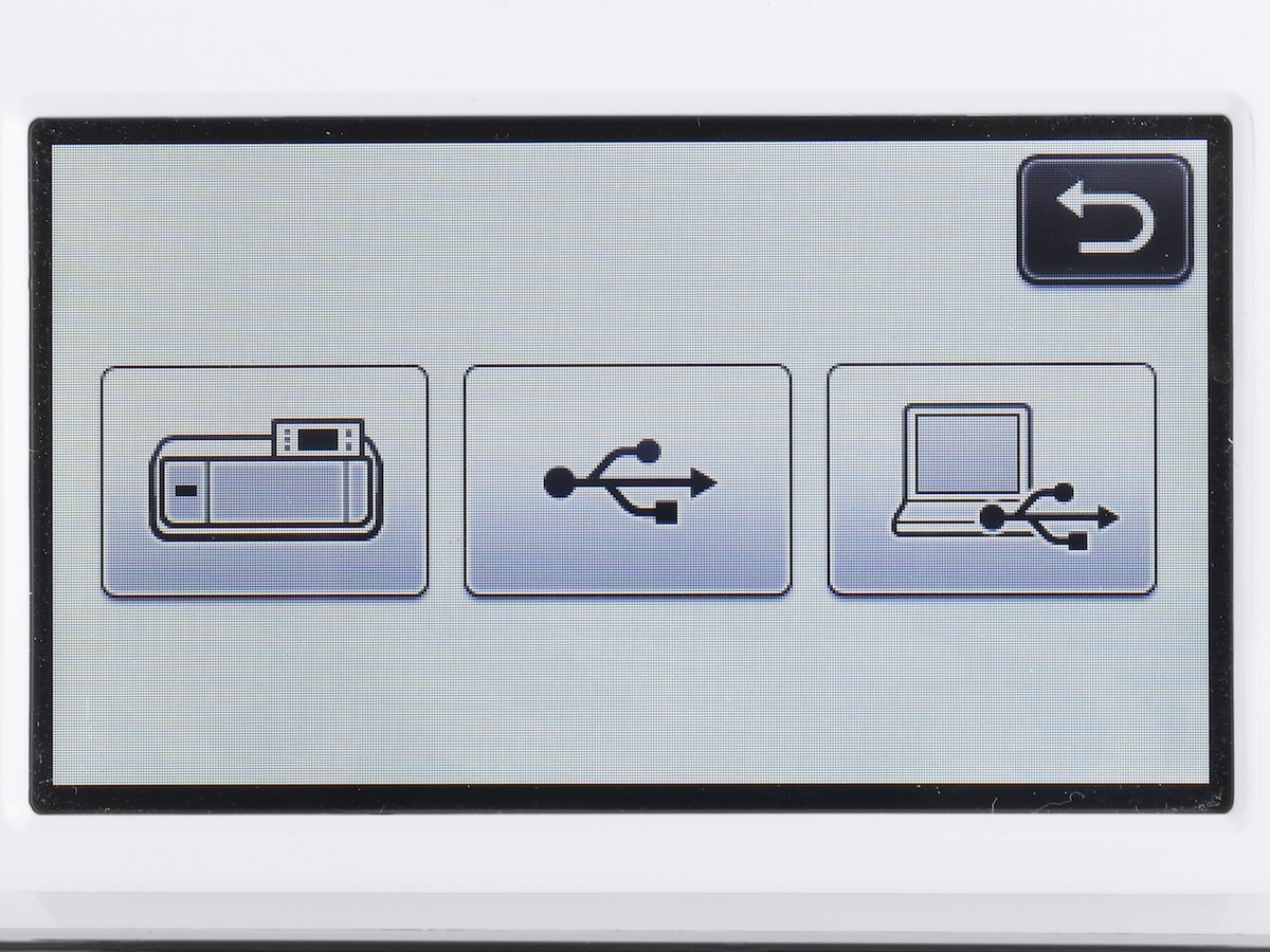 USBメモリーからの読み込みは、本体編集画面で「データ呼び出し」を選び、中央のUSBマークをタッチ。するとファイル一覧が表示されるので、そこから使いたいファイルを選ぶだけです。