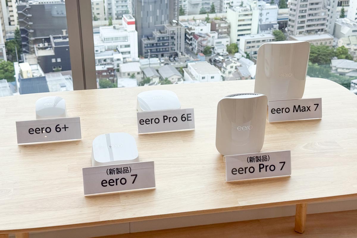 新製品の「eero 7」(1.8Gbps)と「eero Pro 7」(3.9Gbps)は、Wi-Fi 7に対応しつつ「eero Max 7」(4.3Gbp)よりもさらに手軽に購入できるようにした製品。