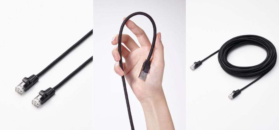 エレコムの新しいLANケーブルは、10ギガビットイーサネット「10GBASE-T」に対応するCat6A準拠ケーブルやCat7相当ケーブル、さらに40ギガビットイーサネット「40GBASE-T」に対応するCat8準拠ケーブルの3タイプだ。