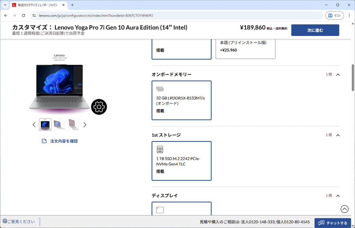 このLenovo Yoga Pro 7i Gen 10 Aura Edition(14型 Intel)の標準モデルは、メモリーが32GB、ストレージが1TBと、クリエイター向けパソコンの大前提はクリアしている。