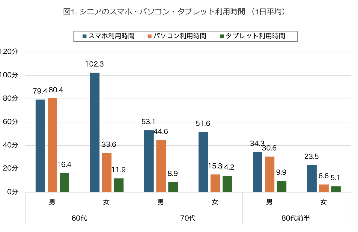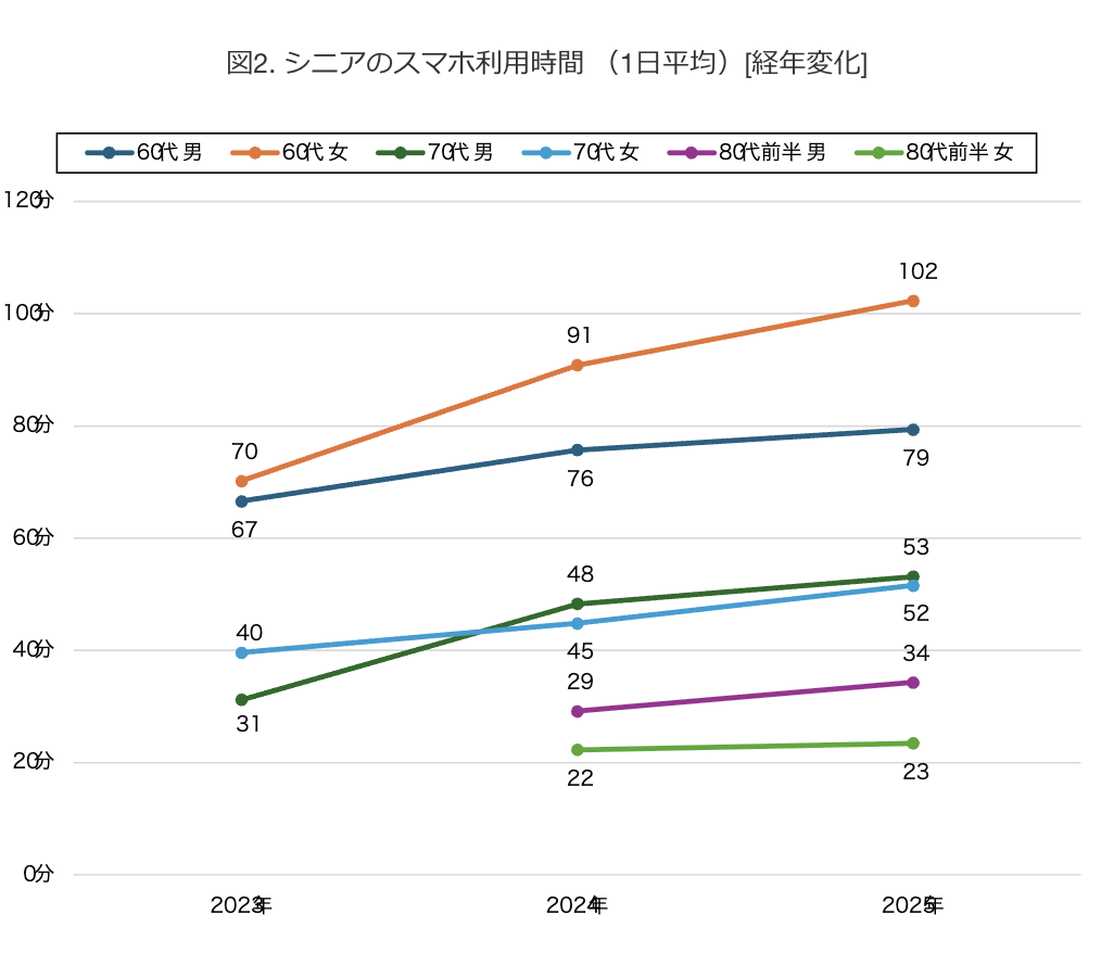 60代女性のスマホ利用時間がたった2年で1.5倍に増加