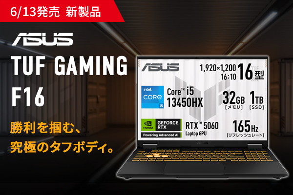 ASUSの最新ゲーミングノート「TUF GAMING F16」発売!RTX 5060 Laptop GPU搭載で価格は249,800円
