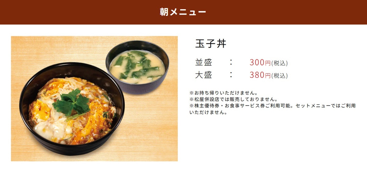 今回の「得朝親子丼」は一部店舗限定ではありますが、松のや全体として朝メニューは充実しています。