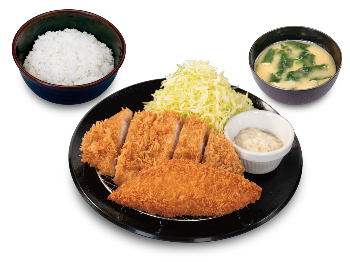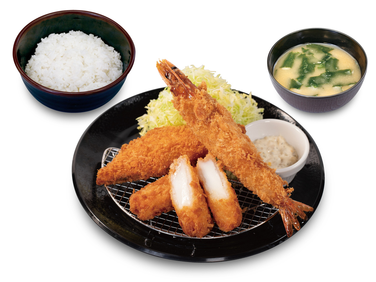 サーモンフライに加え、イカフライと海老フライを組み合わせた「海鮮盛合せ定食」と、ロースかつとサーモンフライを一度に楽しめる「ロースかつ&サーモンフライ定食」が登場。「海鮮盛合せ定食」は、エビフライが有頭大海老のフライになった豪華版もラインアップします