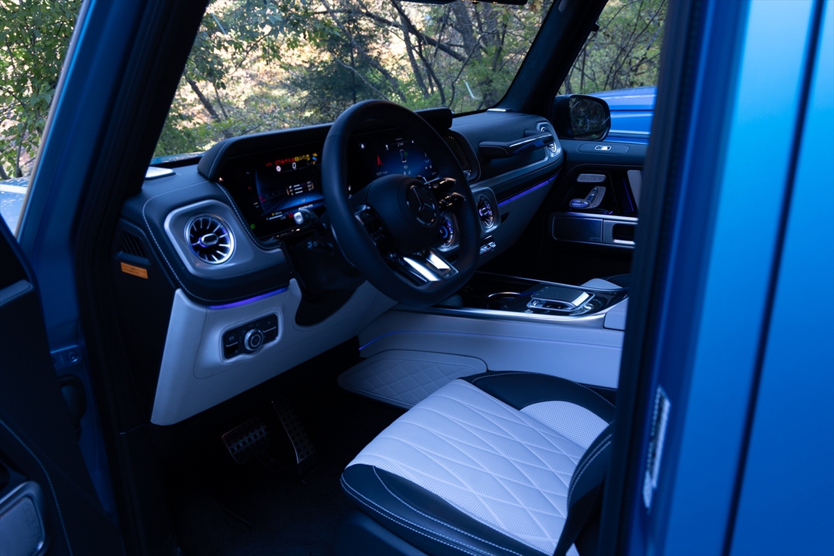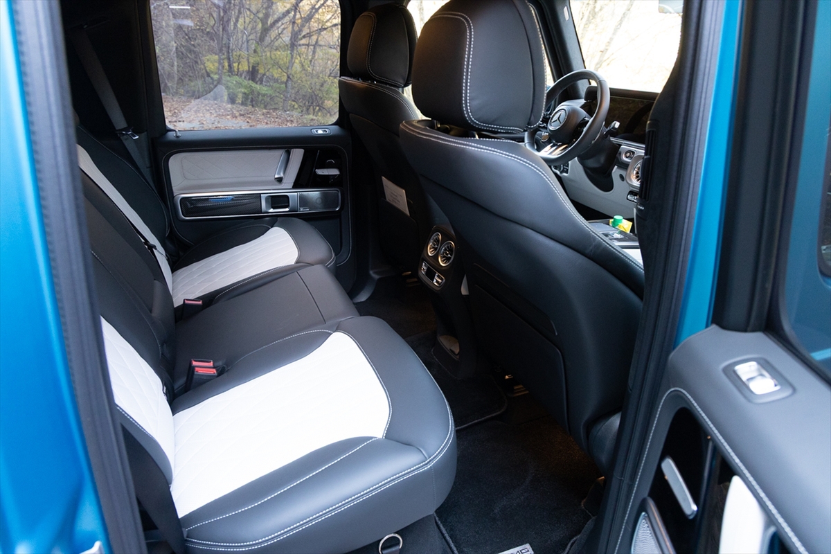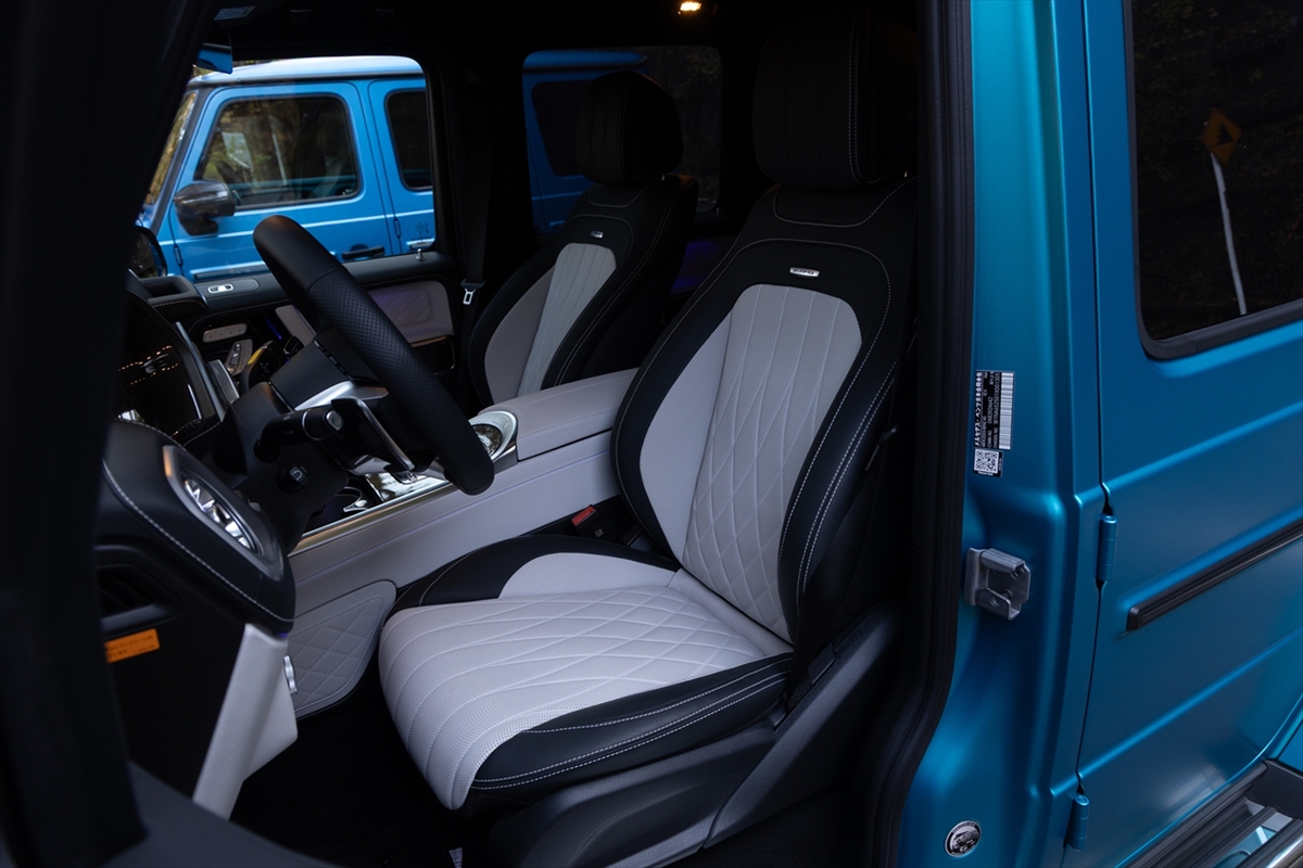 ホワイトレザーのインテリアは、オフロード車の無骨さを上質なレザーでラグジーに演出。まるで羊の皮を被ったライオンといったところでしょうか。