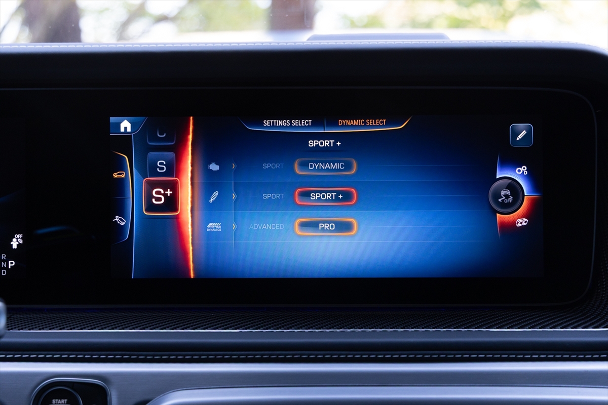 走行モードはMBUXまたはステアリングホイールにあるダイヤルで変更可能。サスペンションの設定など、個別にセッティングを詰めることができます。