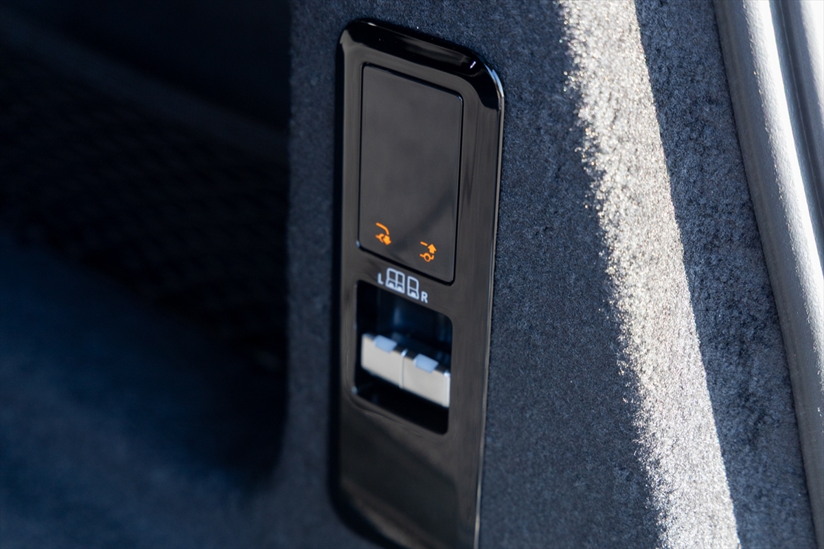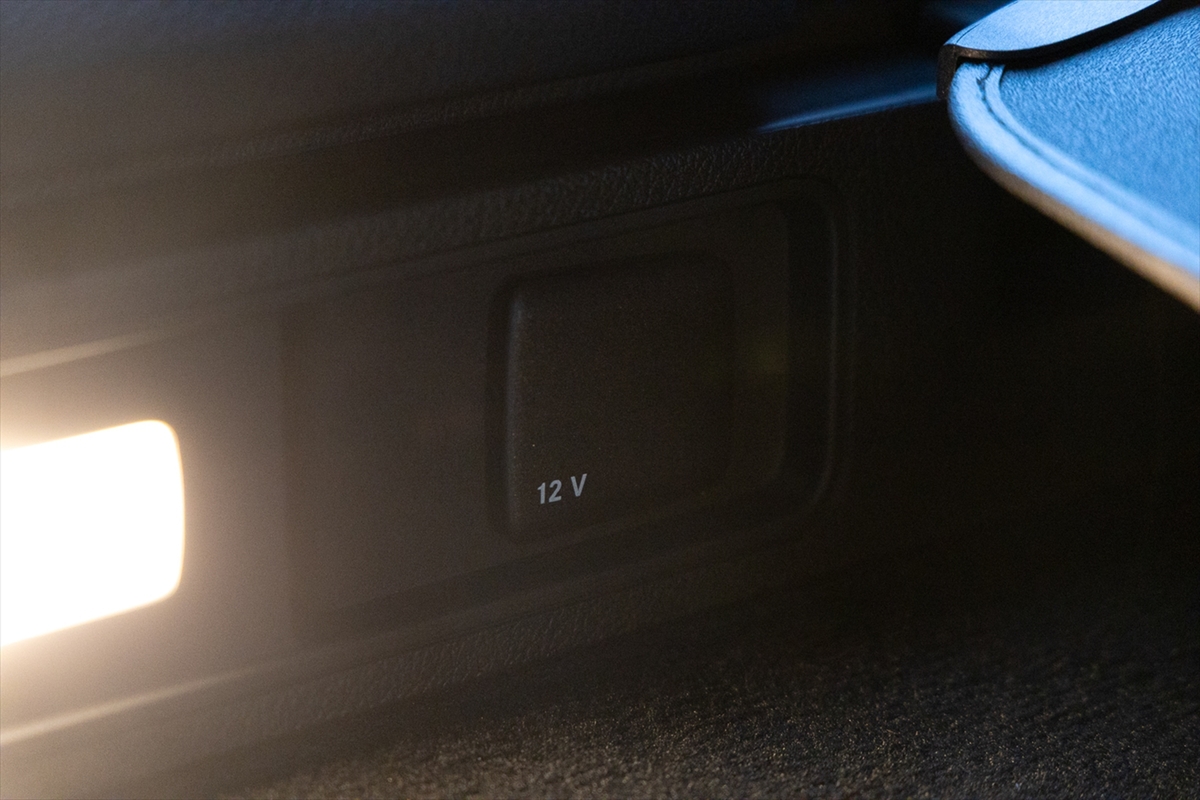 荷室はかなり広め。12Vのアクセサリーソケットも用意されています。積載時に便利な後輪だけの車高を下げる機構も搭載しています。