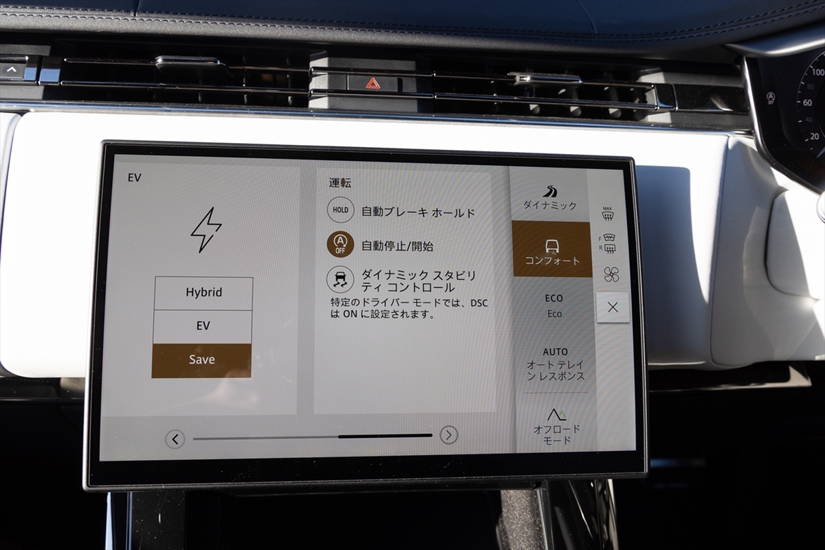 続いてレンジローバー・スポーツ・オートバイオグラフィー P550e。価格は1685万円と、Mercedes-AMG G63の約半分です。ボディーサイズは全長4960×全幅2005×全高1820mmで、車体重量は2870㎏。こちらもヘビー級です。
