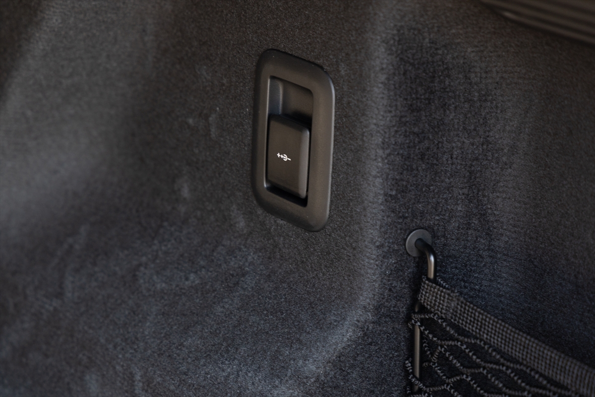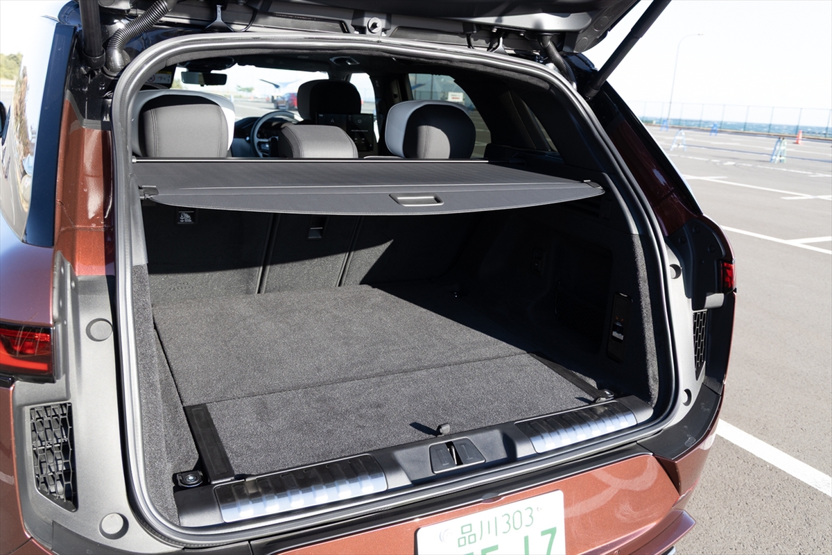 荷室はGクラスと比べると狭いですが、それでもかなり広い印象。12Vサービスアウトレットも用意されています。