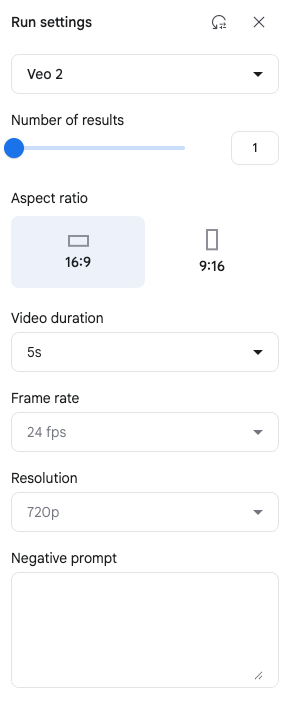なお、生成の際に画面右側の「Run Setting」で動画の数(2本まで)、アスペクト比(横長・縦長)、秒数(5〜8秒)を選択できる。なお、フレームレート(24fps)と解像度(720p)は固定だ。