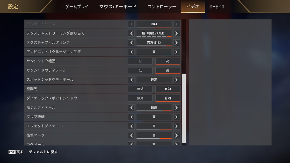 Apex Legendsも射撃訓練場で一定の操作を行なったが、WQHDで144Hz張り付きプレイ、FullHDなら240Hzプレイを狙える結果を出している。ビデオメモリーの最大使用量は6GBを超えたが、心配なくプレイを楽しめるだろう。