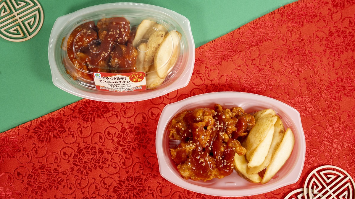 鶏の唐揚げにコチュジャンやにんにく、三温糖等を合わせた人気の甘辛メニュー「ヤンニョムチキン」も登場。ほのかに香るシナモンが特長です。