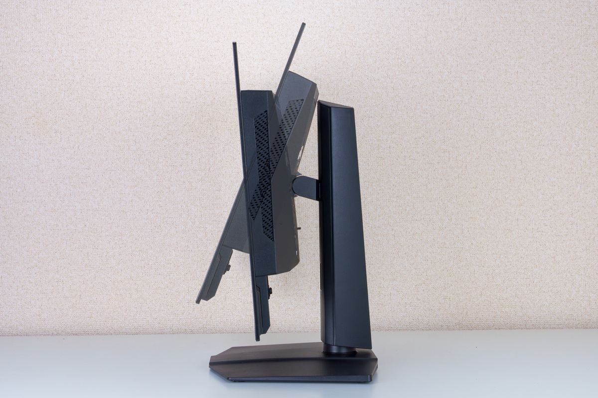 さっそく試用してみたが、組み立てはツールレスで設置は簡単。調整機構もスイベルが左右30°、チルトが-5°~15°、高さが最大110mm、ピポットが左右90°と充実しているので、プレイしやすい角度に合わせやすい。