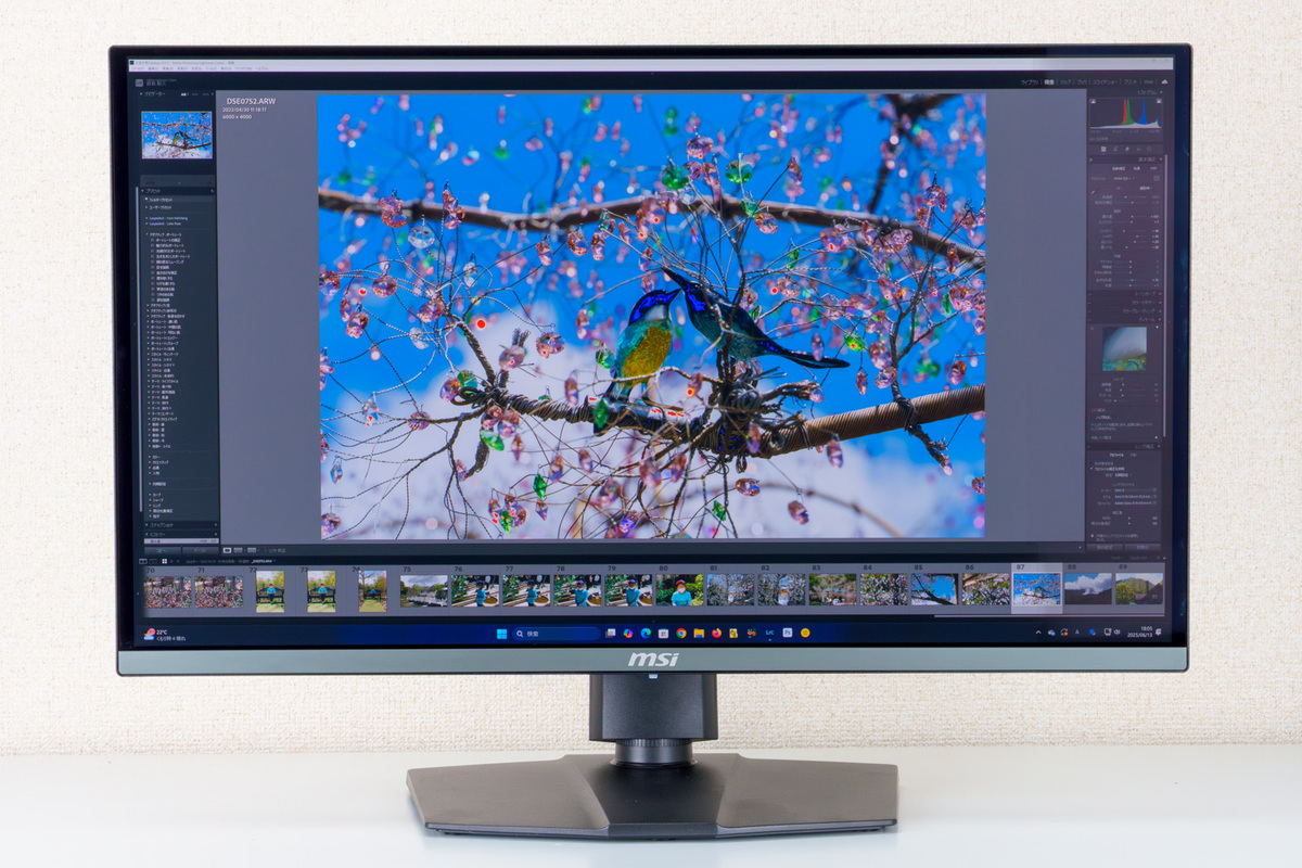 広色域なことから、クリエイティブな作業にも向いている。26.5インチで4K解像度というのは少々オーバースペックだが、その分精細感があるので写真や動画の編集・現像作業では、作業しやすい。残像感のない滑らかなスクロールも、写真を拡大して修正するときに作業しやすい。