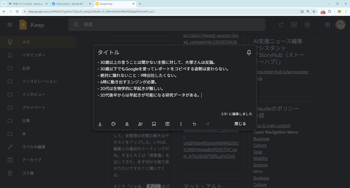 以下は、Google Keepのメモを「どこでもGPT」で箇条書きにしているところの動画だ。