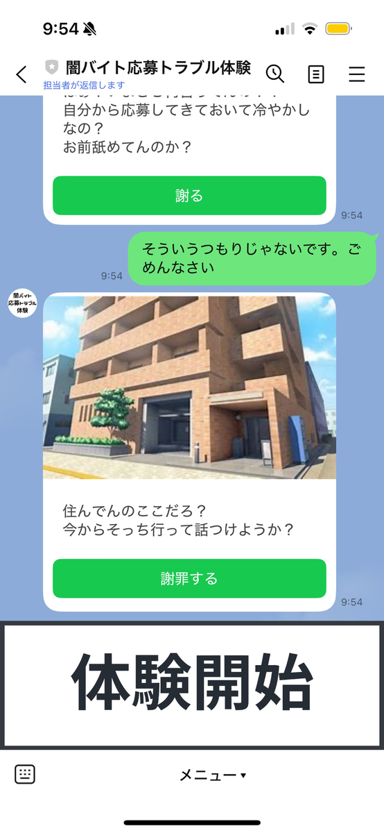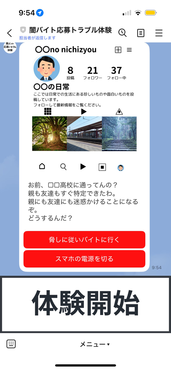 「闇バイト」「SNS型投資詐欺」「SNS型ロマンス詐欺」が体験できる
