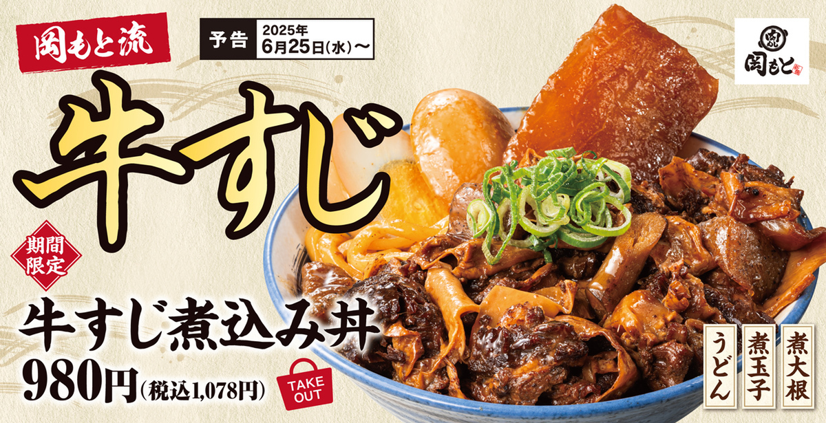 東京都と神奈川県を中心に展開する肉めし専門店「肉めし岡もと」は6月25日から、期間限定メニューとして「牛すじ煮込み丼」と「牛すじ煮込み定食」を発売します。