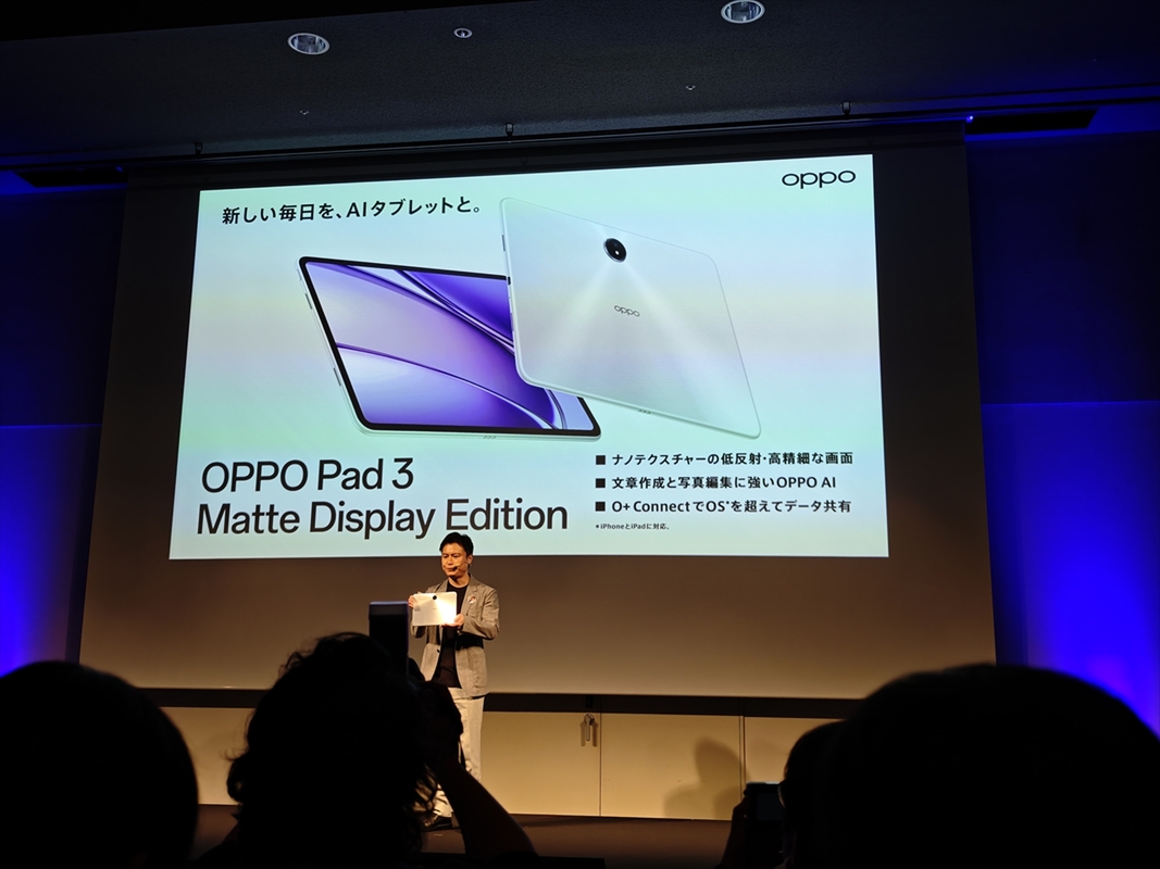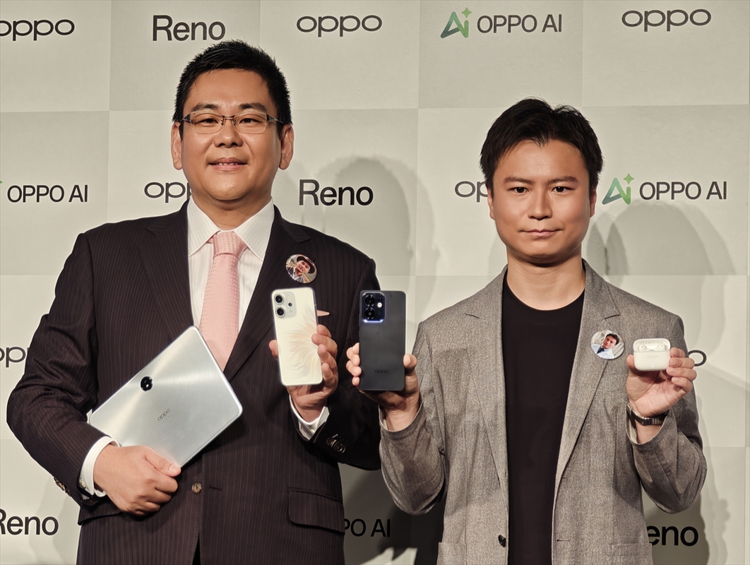 OPPOは新製品発表会を開催し、日本市場における新たなAI戦略と、それを体現する最新スマートフォン「OPPO Reno13 A」、グローバル初披露となる「OPPO Reno 14 5G」、そしてAndroidタブレット「OPPO Pad 3 Matte Display Edition」やワイヤレスイヤホン「OPPO Enco Buds3 Pro」といった新製品を発表した。
